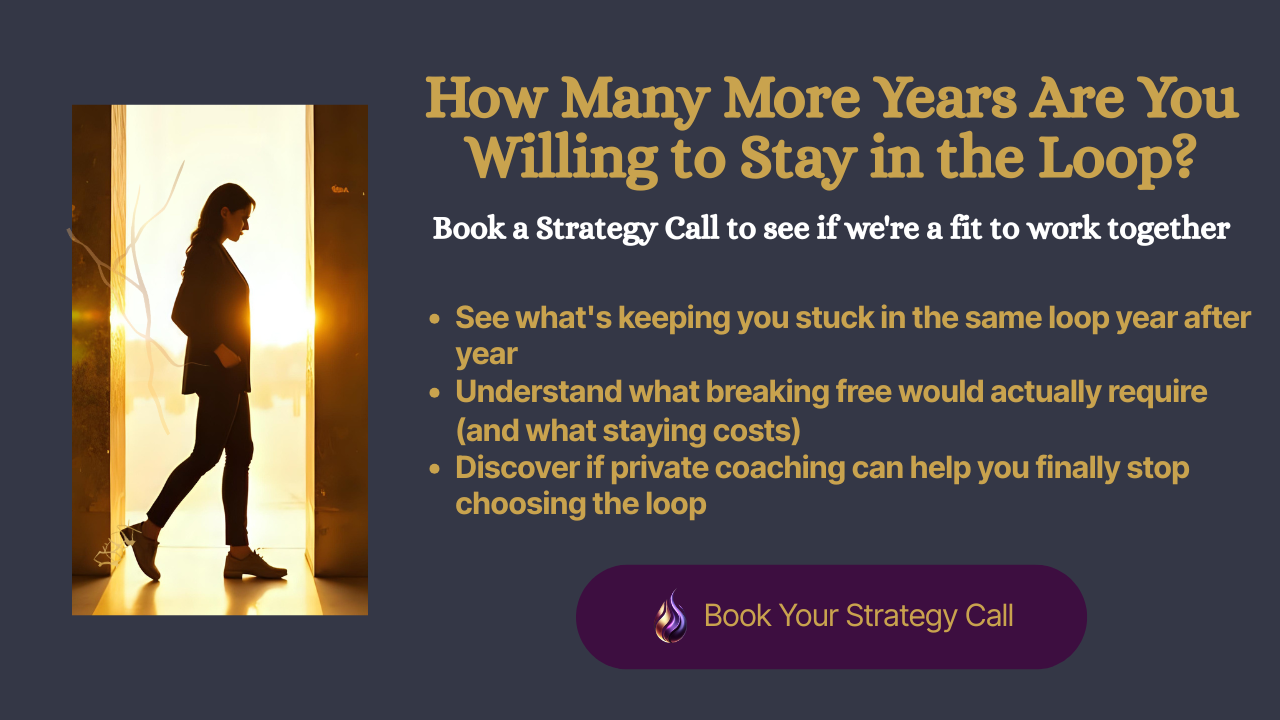 Here's what nobody tells you about your loop: You're not stuck because circumstances are trapping you there. You're stuck because you keep choosing survival mode, telling yourself, "Next year will be different" when things settle down.