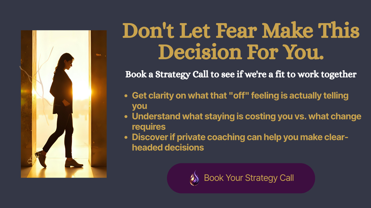 If I knew that staying in this role for another year would cost me my health, my peace, or my sense of self, would that change my decision? And if the answer is yes, what does that tell me about the decision I'm actually making right now?